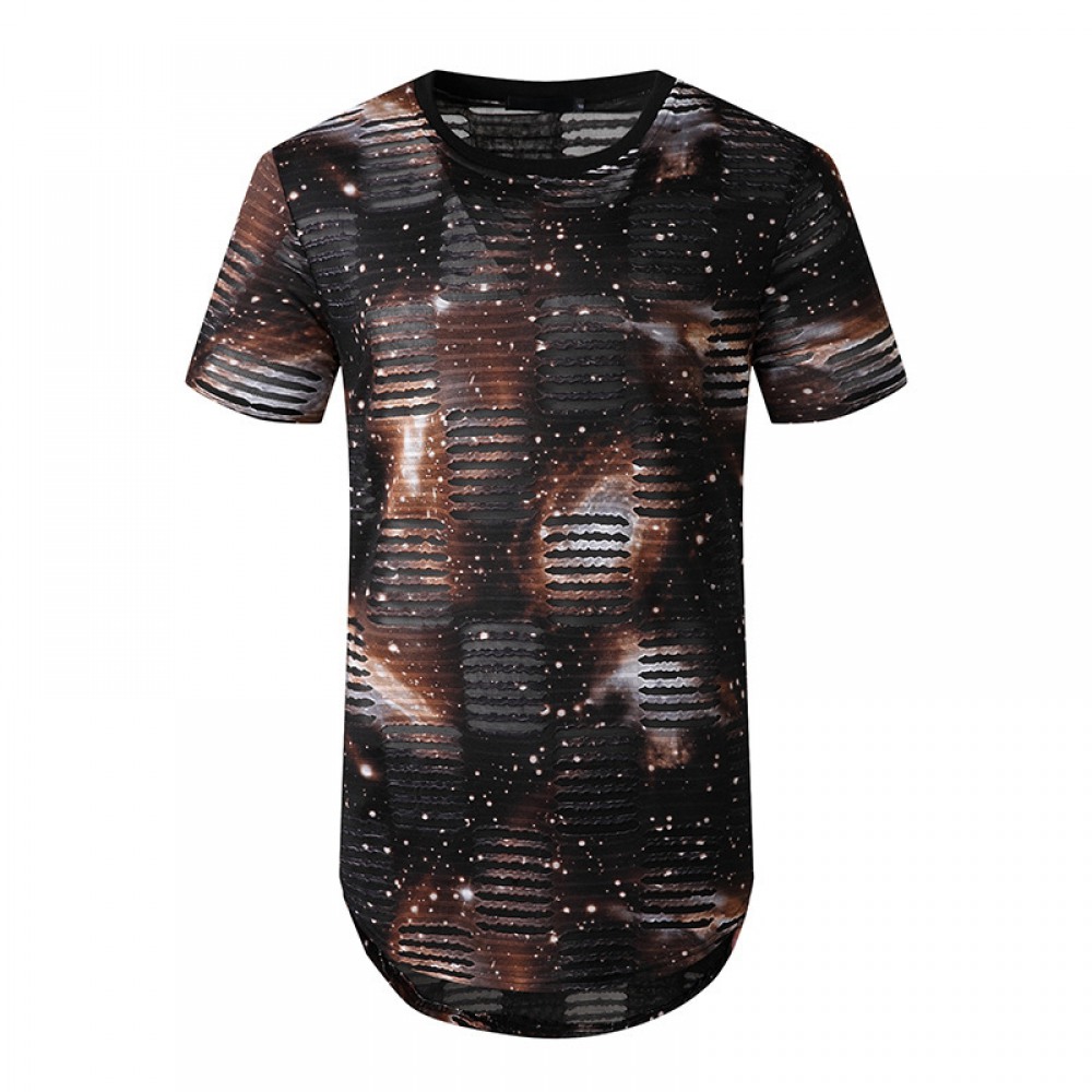 New Men's Plus Size Smiley Hole Short-Sleeved Hipster Hip-Hop T-Shirt