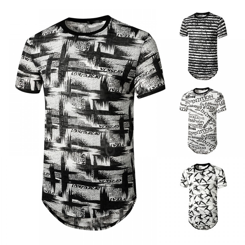 Summer Men's English Jacquard Fashion Hipster Hip-Hop Short-Sleeved T-Shirt