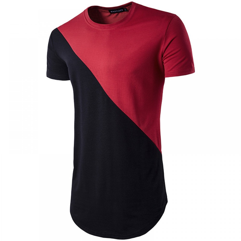 Summer New Men's Stitching Mid-Length Round Neck Short-Sleeved T-Shirt Mens