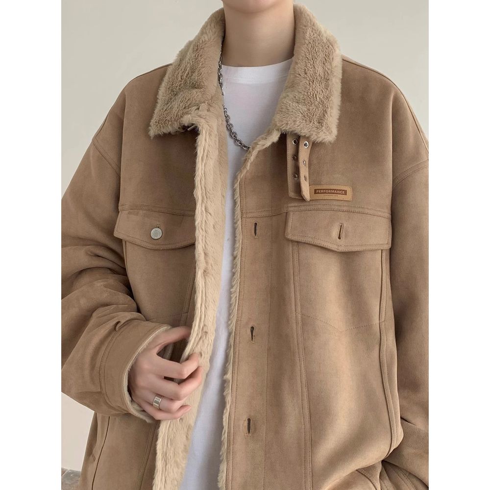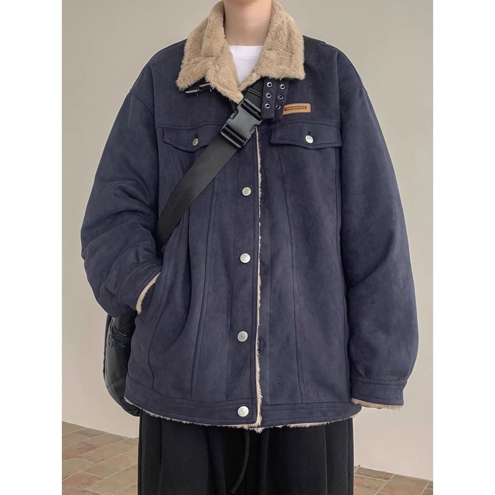 Men's Winter Lambswool Coat With Plush And Thick Fur Lapel Cotton Jacket