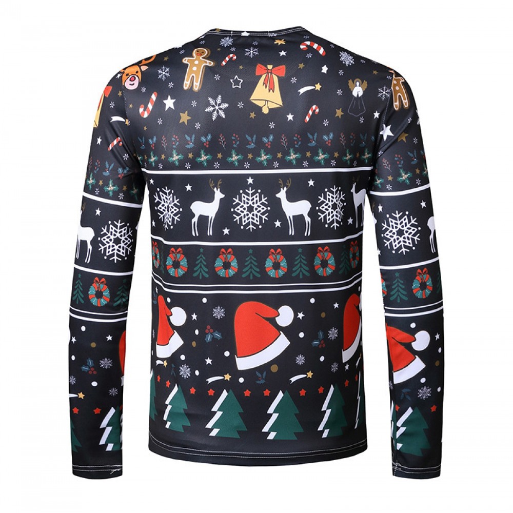 New 3D Personality Printing Fashion Men's Christmas Elk Pattern Long Sleeve T-Shirt