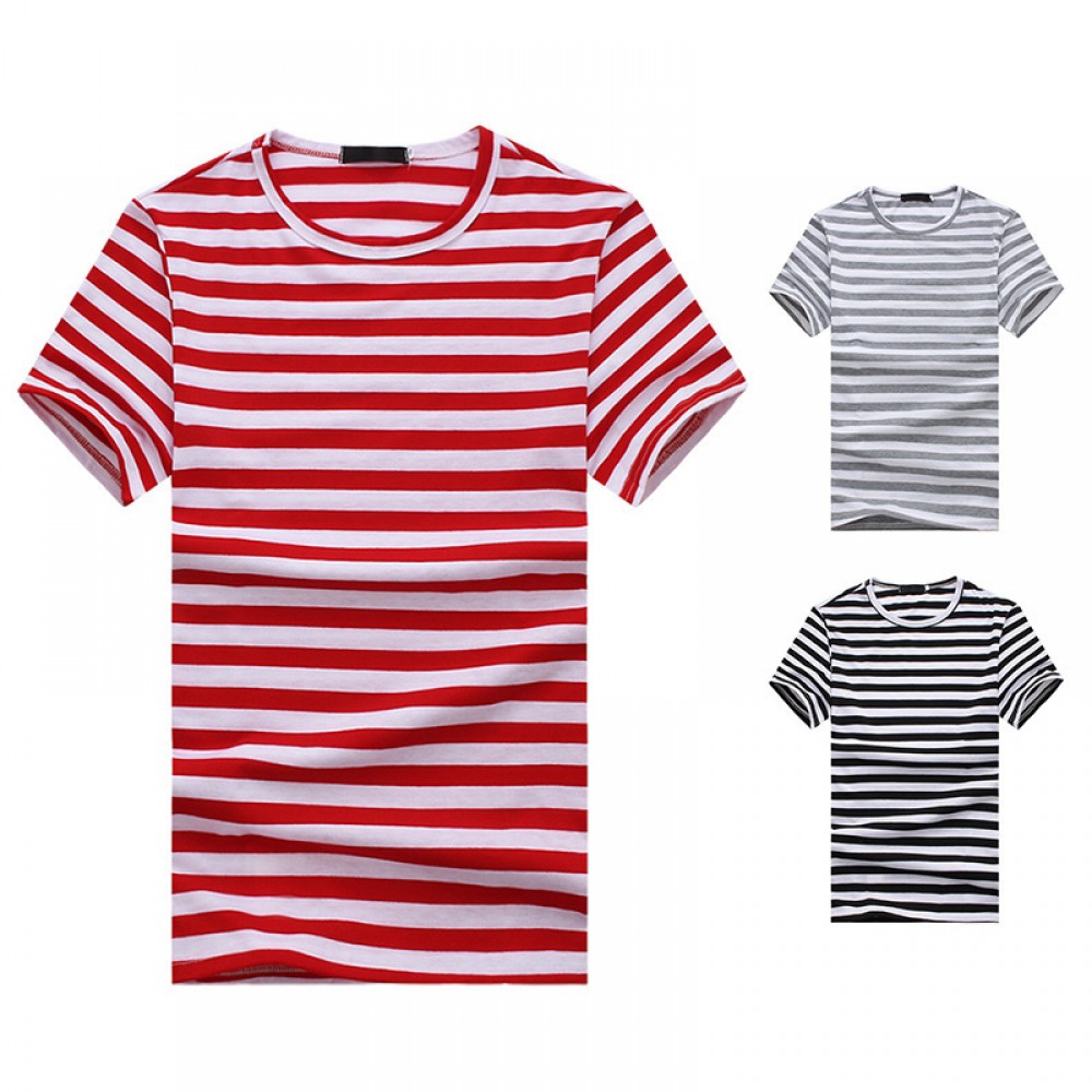 New Men's Large Size Striped Short-Sleeved T-Shirt