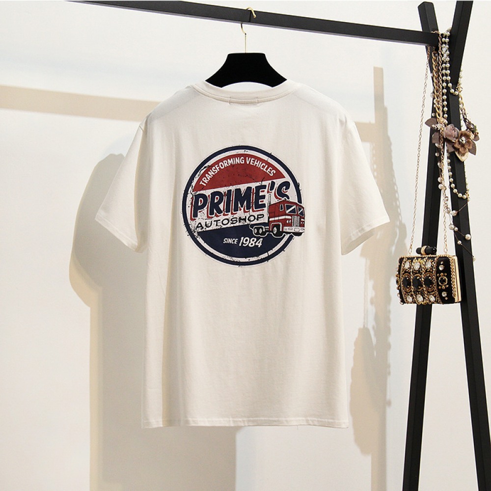 New Plus Size Women's Summer Dress Fat Extra-Large Size Womens Slimming Lucky Cat Short-Sleeved T-Shirt