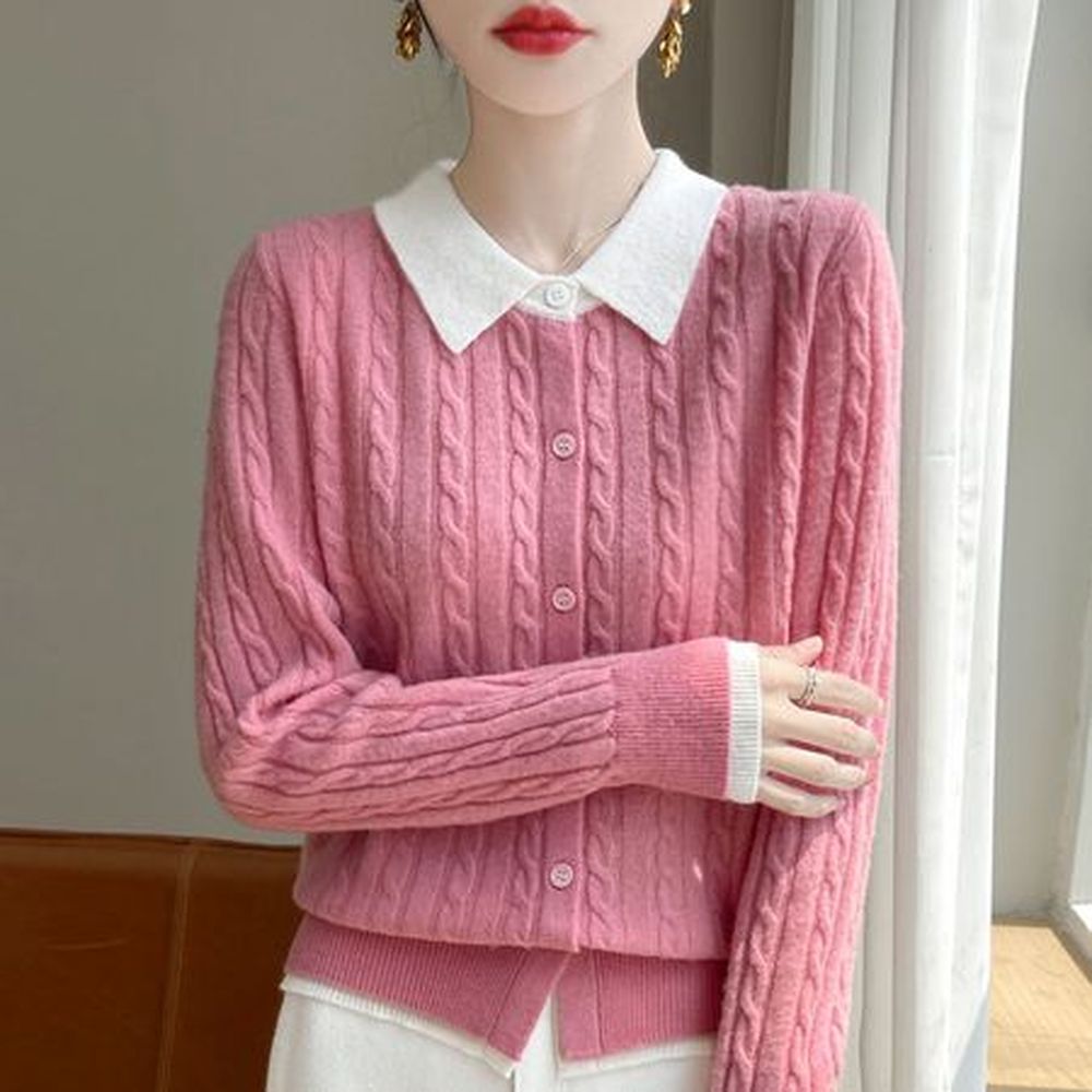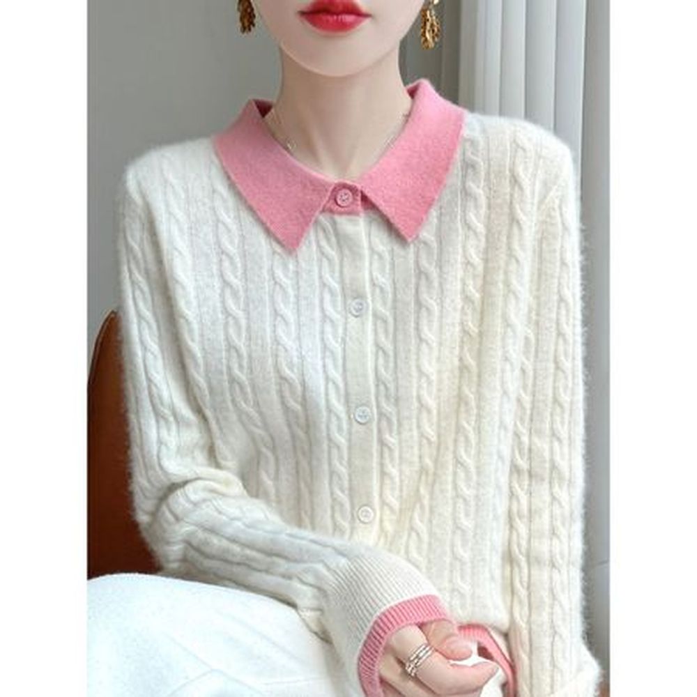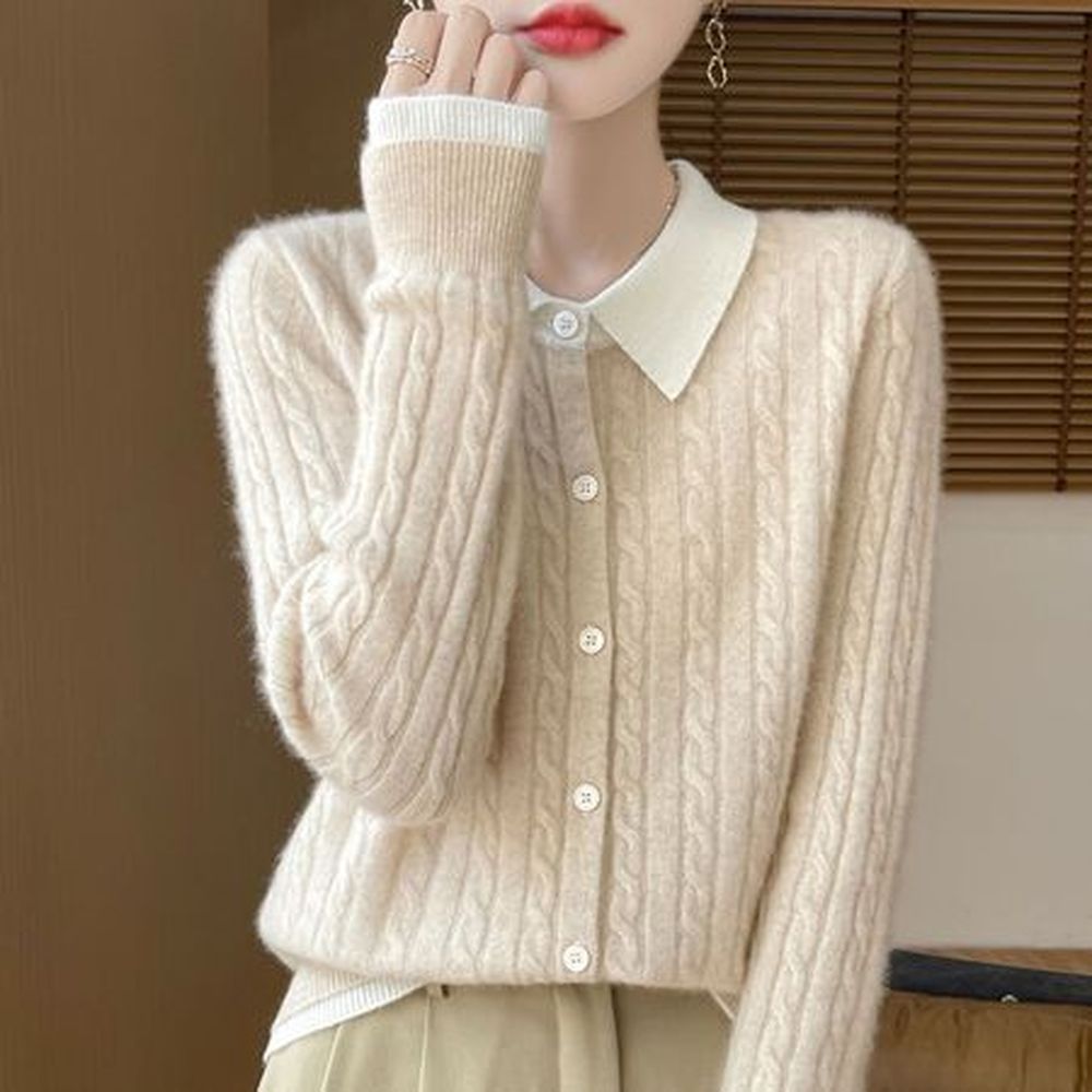 Women's Wool Knitted Cardigan Sweater Polo Collar Coat